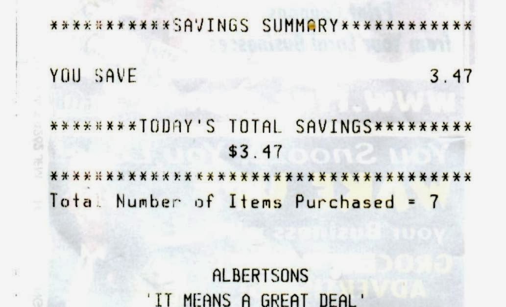 When he came back, he said he didn't think he had ever spent so much for so few items... almost $50 for 7 items --- seven!!